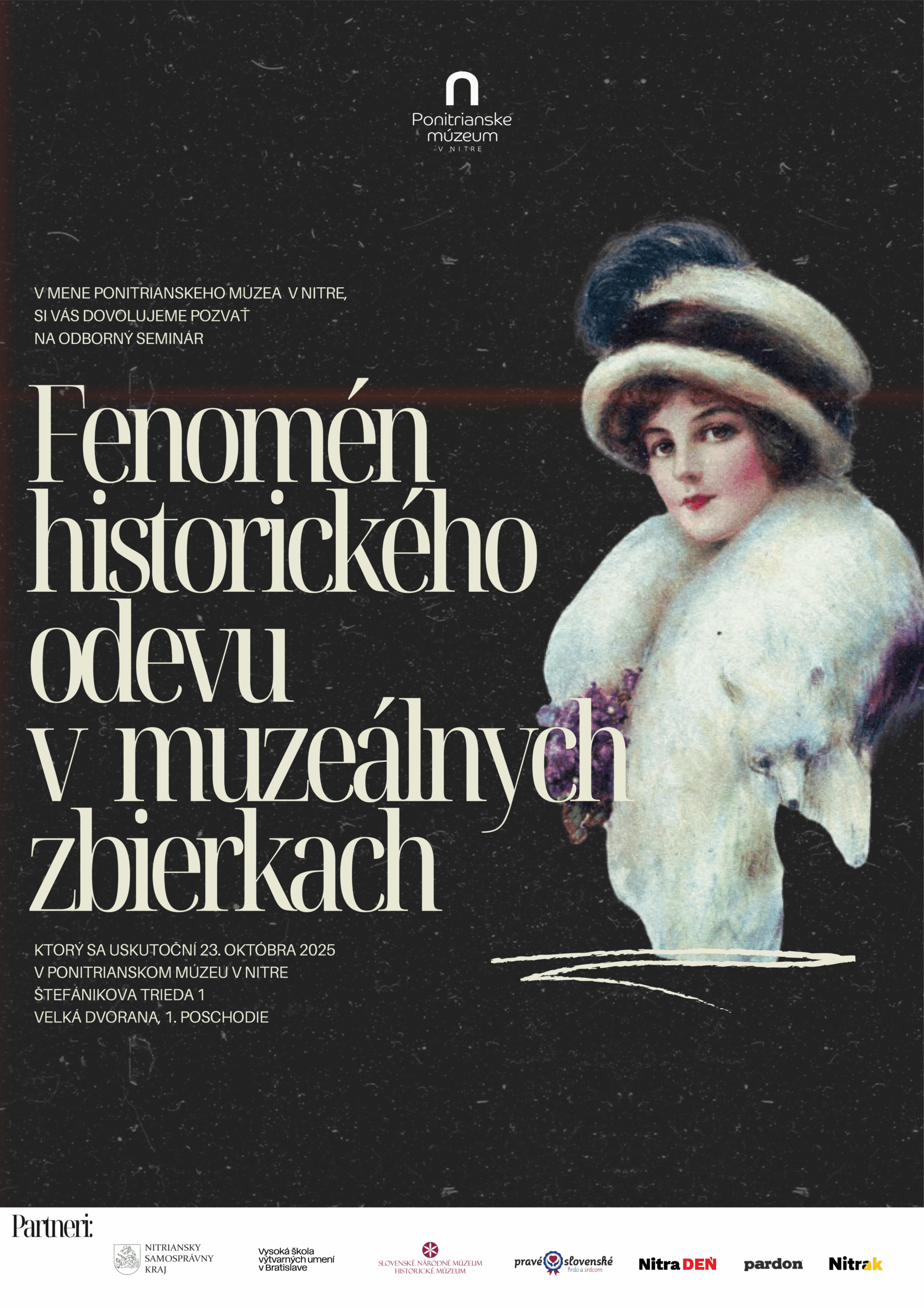 Seminár Fenomén historického odevu v muzeálnych zbierkach predstaví odev a jeho súčasti, ktoré nepochybne patria medzi najatraktívnejšie zbierkové predmety v zbierkových fondoch múzeí. Výnimočnú kolekciu odevov, odevných súčastí a doplnkov uchováva v priestoroch svojho depozitára aj Ponitrianske múzeum v Nitre.