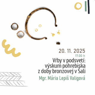 Archeológovia z Archeologického ústavu SAV počas záchranného výskumu pri výstavbe obchvatu Šale odkryli dovtedy neznáme pohrebisko z doby bronzovej. Preskúmali desiatky hrobov pravekých ľudí pochovaných so šperkami, nástrojmi a keramickými nádobami. Prednáška priblíži priebeh výskumu aj najzaujímavejšie nálezy, vrátane tajomných vŕbových listov.