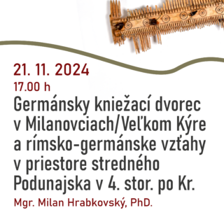 Prednáška sa sústredí na kľúčové aspekty spoločenskej štruktúry germánskeho kmeňa Kvádov v 4. storočí po Kr., pričom zdôrazní vplyv Rímskej ríše na germánsku elitu. Predstavené budú výsledky archeologického výskumu germánskeho kniežacieho dvorca v Milanovciach/Veľkom Kýre a jeho kultúrny kontext z obdobia neskorej antiky. Rovnako budú analyzované archeologické nálezy, ako sú základy stavieb, rímske tehly a keramika, ktoré dokladujú prienik rímskej architektúry do germánskych sídiel.