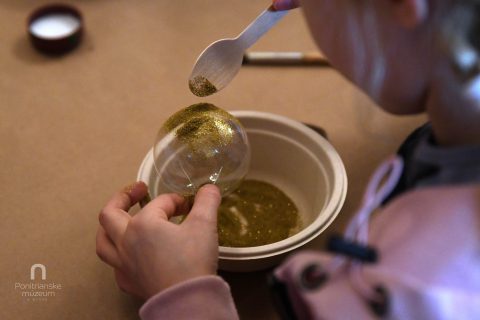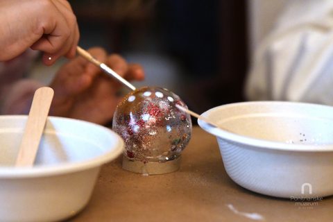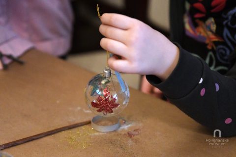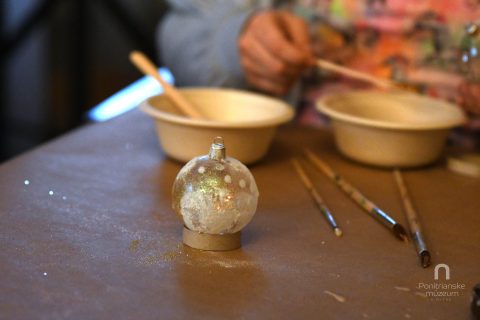 V druhej polovici 20. storočia sa vo výrobných družstvách v Československu ručne maľovali ozdoby z fúkaného skla. Dodnes nám v mnohých domácnostiach zdobia vianočný stromček maľované sklenené ozdoby. V tvorivej dielni si za pomoci lektorky účastníci vytvoria retro vianočnú ozdobu na stromček – sklenenú guľu, ktorú budú maľovať a zdobiť.