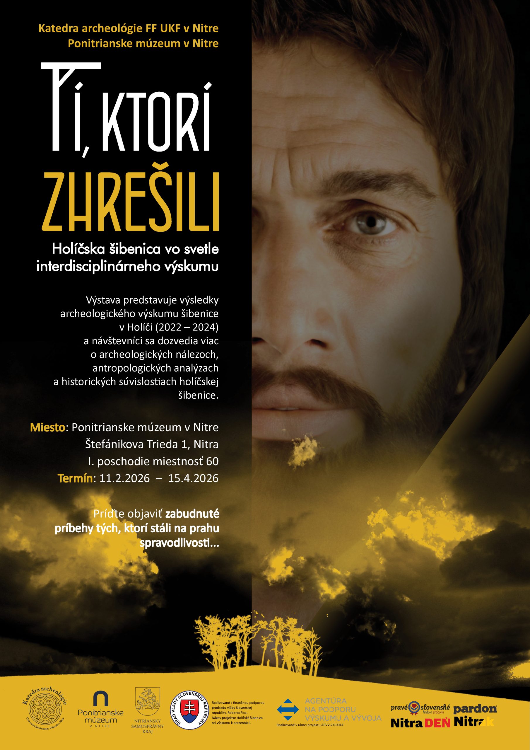 Výstava Tí, ktorí zhrešili predstavuje výsledky prvého systematického archeologického výskumu historickej šibenice v Holíči, uskutočneného v rokoch 2022 – 2024 Katedrou archeológie FF UKF v Nitre. Interdisciplinárne prepája poznatky archeológie, histórie, fyzickej antropológie a digitálnych rekonštrukcií, pričom približuje miesto, ktoré zohrávalo kľúčovú úlohu pri výkone hrdelného práva a verejného trestu v období stredoveku